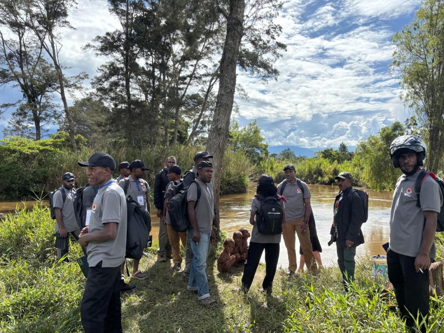 Peserta pelatihan Pencegahan dan mitigasi Bencana Kabupaten Jayawijaya saat melakukan praktek langsung di bentaran sungai baliem Distrik Pisugi