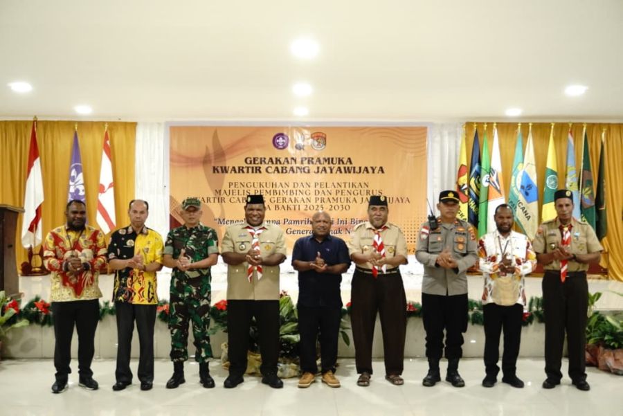 Wamena - Bupati Jayawijaya Atenius Murip hadir dalam Pengukuhan dan Pelantikan pengurus Kwartir Cabang Jayawijaya Periode Tahun 2025-2030 yang dilaksanakan di Sasana Wio I Kantor Bupati Jayawijaya, Kamis 18 Desember 2025.