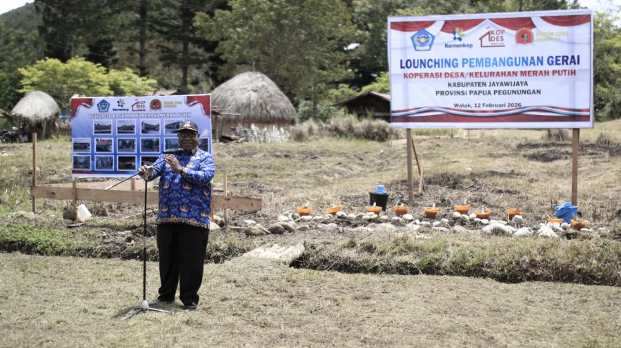 Wamena - Melalui Instruksi Presiden RI, Prabowo Subianto dalam Perpres No. 12 Tahun 2025 terkait dengan Koperasi Desa Merah Putih, untuk dibangun diseluruh pelosok tanah air, sehingga melalui instruksi tersebut maka Pemerintah Kabupaten Jayawijaya mengambil langkah untuk menjalankan Program Membangun Koperasi Desa Merah Putih itu, yang mana Pemerintah Kabupaten Jayawijaya telah menyediakan lahan yang bertempat di Kampung Walak, Distrik Asologaima dengan luas lahan 50 x 50 meter, dan pada hari ini kamis, 12 Februari 2026 Bupati Jayawijaya, Atenius Murip, S.H.,M.H bersama Forkopimda, serta seluruh rombongan dari Kabupaten Jayawijaya turut hadir dalam acara Lounching Pembangunan Gerai Koperasi Desa Merah Putih yang dilaksanakan di Kampung Walak, Distrik Asologaima. (12/02/26).
