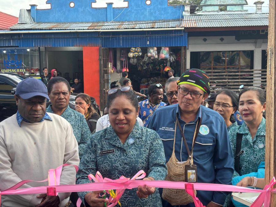 Ketua Dekranasda (Dewan Kerajinan Nasional Daerah) Kabupaten Jayawijaya sekaligus Plt. Kadis Dinas Lingkungan Hidup (DLH) Kabupaten Jayawijaya Dr. Idawati Waromi Murip, Sp.KJ dan didampingi beberapa kepala OPD saat mengunting pita dalam pembukaan Festival Ramadhan di Area Mall Wamena.