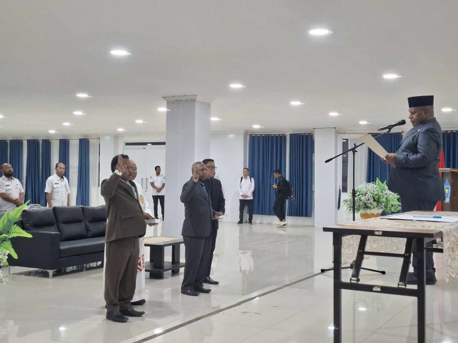 Wamena – Bupati Jayawijaya Atenius Murip, S.H, M.H melantik 2 Pejabat Pimpinan Tinggi Pratama secara Defenitif di lingkungan Pemerintah Kabupaten Jayawijaya, diantaranya Kepala Dinas Pekerjaan Umum dan Penataan Ruang dan Kepala Dinas Koperasi, UMKM, dan Tenaga Kerja di Sasana Wio Lantai I Kantor Bupati Jayawijaya, Rabu 4 Maret 2026.