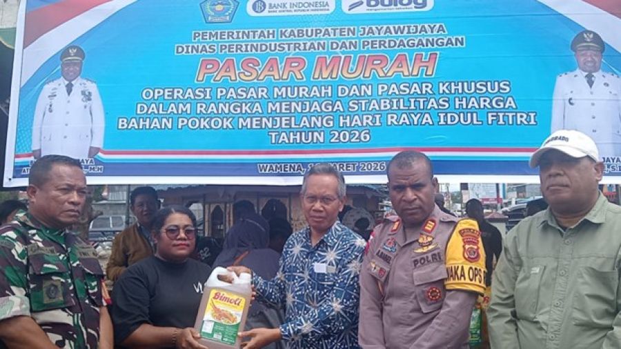 WAMENA - Pemerintah Kabupaten Jayawijaya melalui Dinas Perindustrian dan Perdagangan menggandeng Bulog Wamena melakukan Gerakan Pangan Murah (GPM), dalam rangka menghadapi perayaan Idul Fitri 1447 Hijria, diserbu oleh raturan warga Kota Wamena, kegiatan tersebut dipusatkan di halaman Koramil Wamena Kota, Sabtu 13 Maret 2026.