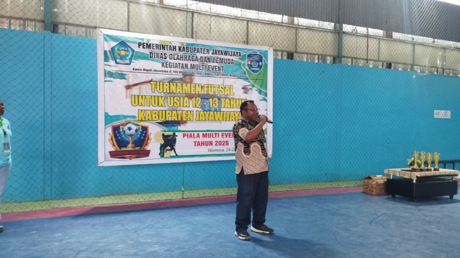 Bupati Jayawijaya yang diwakili Asisten III Setda Jayawijaya, Lekius Yikwa, membuka secara resmi Turnamen Futsal Tingkat SMP se-Kabupaten Jayawijaya, yang digelar Dinas Olahraga dan Pemuda Kabupaten Jayawijaya, yang berlangsung di Lapangan Futsal Akuen Wamena, Jumat (24/04/2026).
