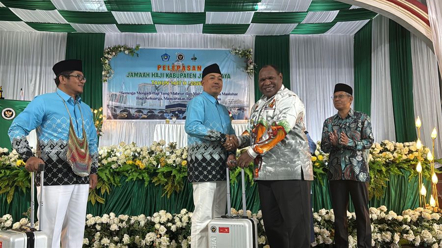 Wamena - Bupati Jayawijaya Atenius Murip, S.H.,M.H hadir dalam Acara Pelepasan Jamaah Haji Kabupaten Jayawijaya Tahun 1447 H/2026M yang akan menuju Mekkah (Arab Saudi) guna menunaikan rukun Islam yang Kelima yakni Menunaikan Ibadah Haji, Jumat 24 April 2026.