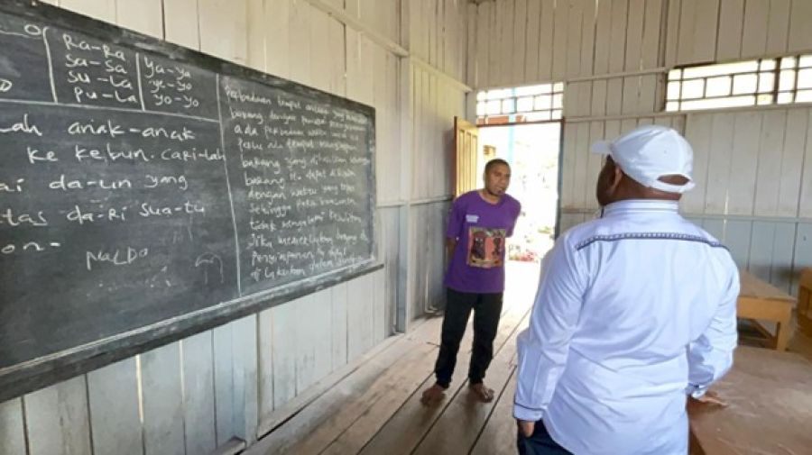Wakil Bupati Jayawijaya bersama Pak Guru Fransiskus Di ruang kelas