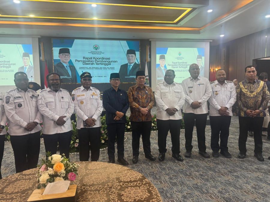 JAKARTA - Bupati Kabupaten Jayawijaya, Atenius Murip, S.H., M.H., menghadiri Rapat Koordinasi Percepatan Pembangunan Daerah Tertinggal yang diselenggarakan oleh Kementerian Desa dan Pembangunan Daerah Tertinggal Republik Indonesia di Jakarta, Rabu (25/02/2026).