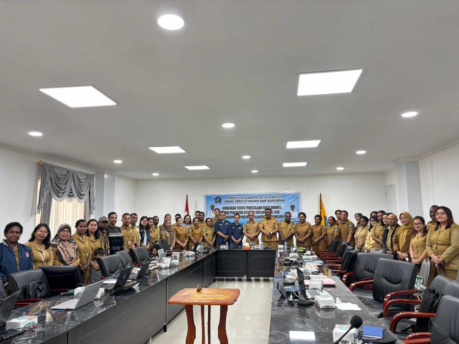 Wamena – Pemerintah Daerah Kabupaten Jayawijaya melalui Dinas Perpustakaan dan Arsip Daerah menggelar kegiatan Bimbingan Teknik Pengelolaan Arsip Dinamis dan Penerapan Aplikasi Srikandi di Lingkungan Pemerintah Kabupaten Jayawijaya.