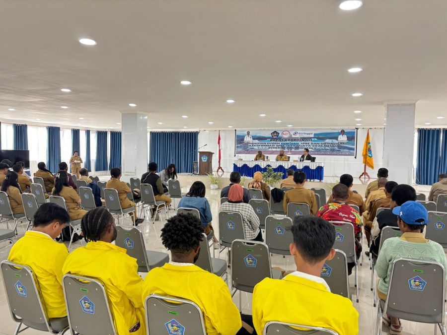 Wamena - Wakil Bupati Jayawijaya Ronny Elopere,S.IP, M.KP membuka kegiatan Rapat Koordinasi Pemenuhan Eviden Evaluasi SPBE dan Sosialisasi Transformasi SPBE Jayawijaya 2026  Menuju Pemerintahan Digital, Selasa 28 Oktober 2025.